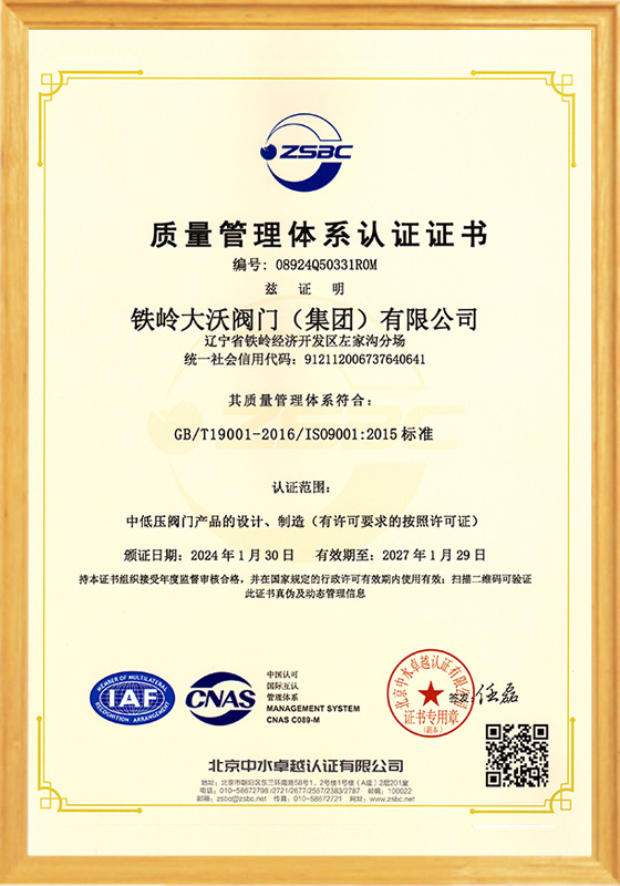 鐵嶺大沃閥門(集團)有限公司,是原鐵嶺閥門廠改制后,以原國有企業(yè)各領域的骨干精英為核心所組建的創(chuàng)新型企業(yè)。公司在傳承老“鐵閥”所積淀的“管理嚴格、質(zhì)量第一”精神的同時,將“以客戶為中心,市場為導向,科技創(chuàng)新為支撐”作為發(fā)展理念;將“修為礪器,誠信匠心”作為核心價值觀。在近十年的發(fā)展歷程中,鐵嶺大沃人通過不懈地探索和創(chuàng)新,逐步形成了獨特的經(jīng)營模式及核心競爭力。成為遼寧省企業(yè)廳命名的省級創(chuàng)新型企業(yè);成為通過ISO 9001質(zhì)量管理體系、ISO14001環(huán)境管理體系和ISO 18001職業(yè)健康安全管理體系認證,以及特種設備制造許可證認證......